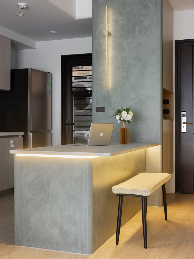 三年九個月, 如鑄鐵那淬火的過程,千錘百鍊出對於設計與工法的執著。 天花,地板,牆,材料來定義空間,創造視覺和触覺感官差異。 利用光線來做設計,活用色彩帶出材料自然原始的質感。 以專業的角度與使用者詳細溝通調整後創造出唯二的專屬風格。 將設計完整融合呈現出來。